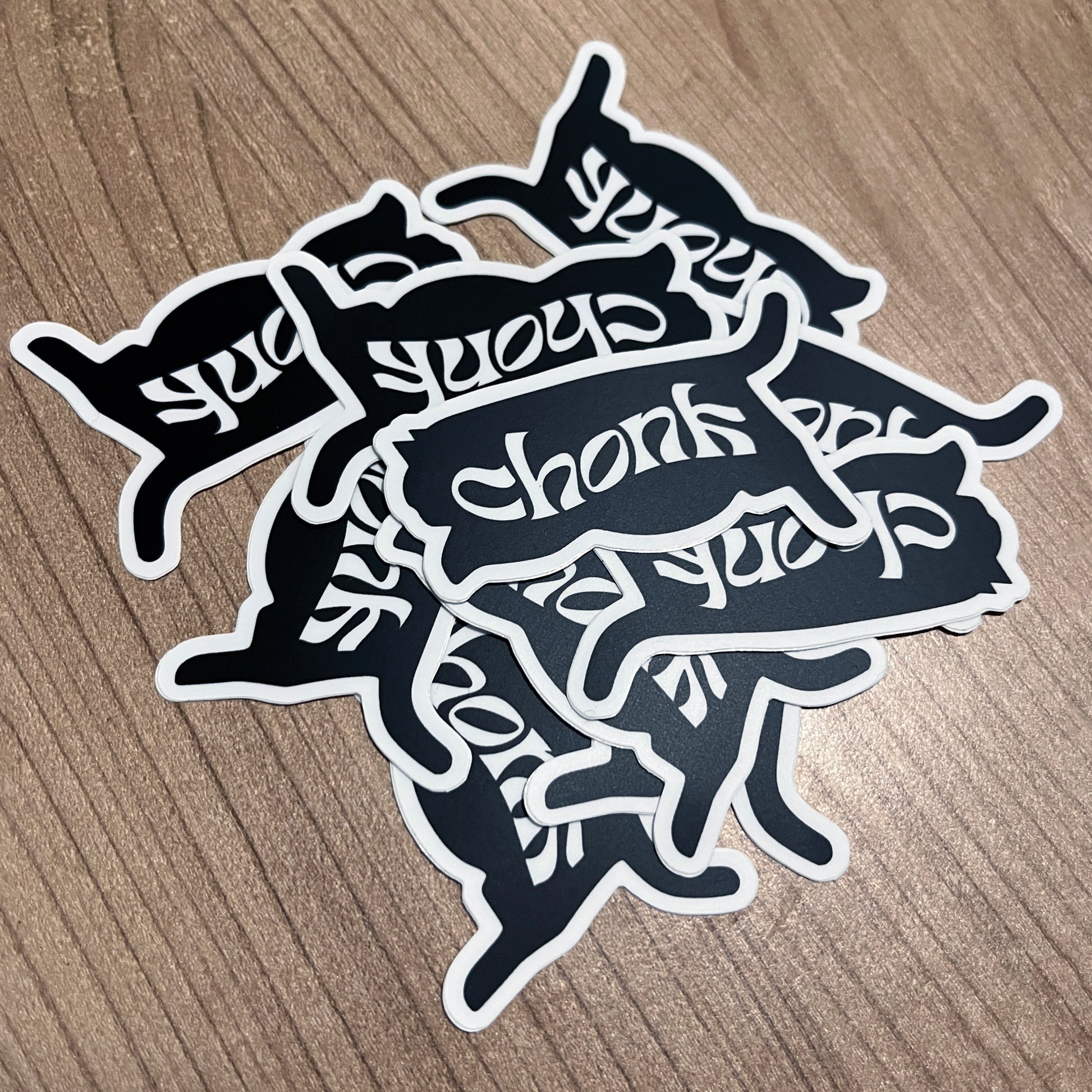 Show your love for all the chonks with this fat cat sticker! This is a playful satire of the lithe leaping feline in a certain athletic apparel brand.