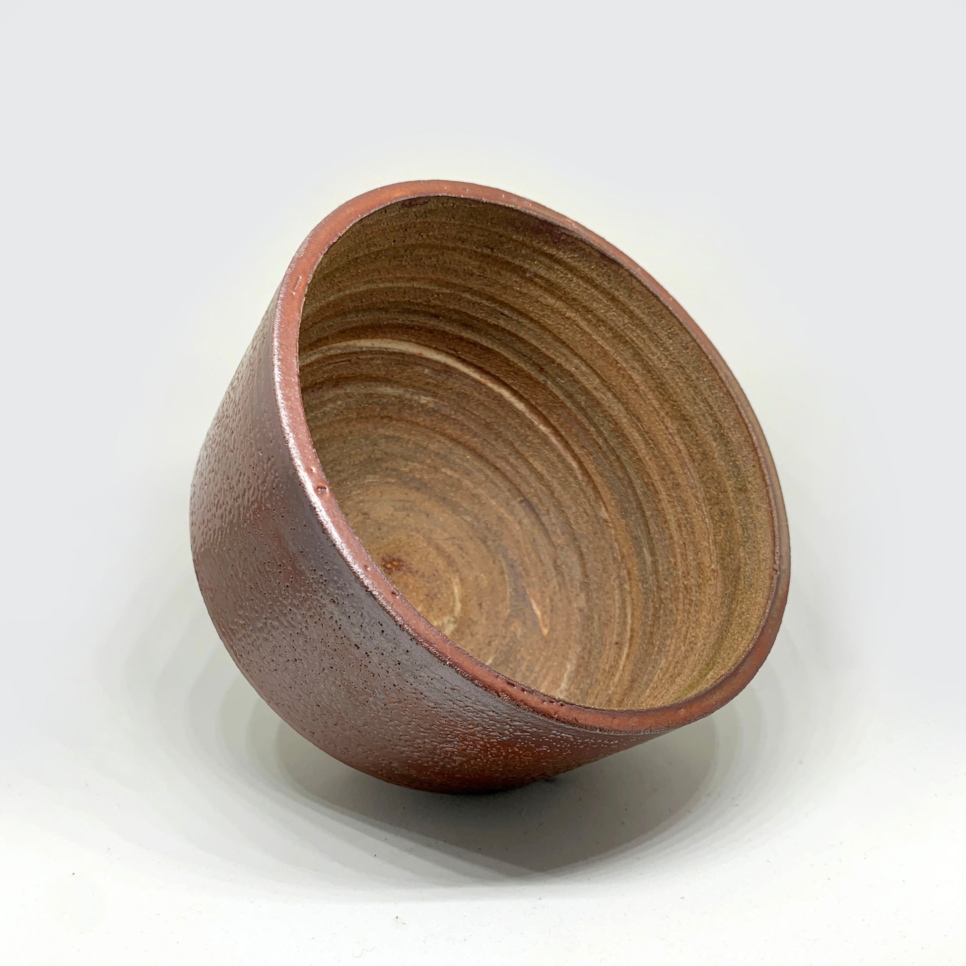 A hand-made clay vase with angular effects on the base glazed with Malcom Davis Shino. This piece is one-of-a-kind, never to be reproduced.