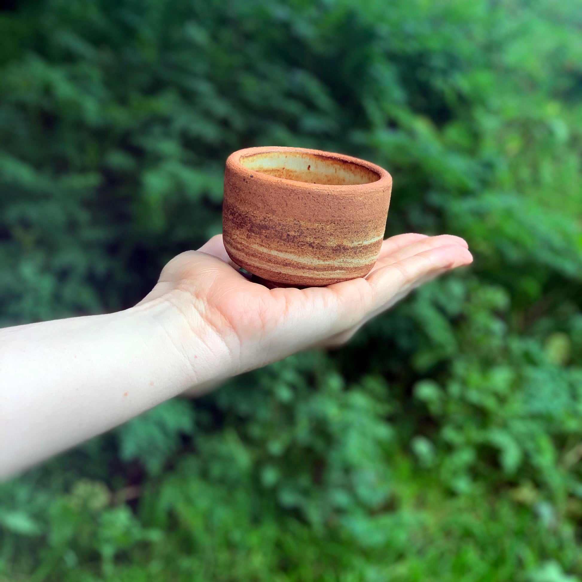 A hand-made marbled clay teacup glazed with Whammo White on the interior only. This piece is one-of-a-kind, never to be reproduced.